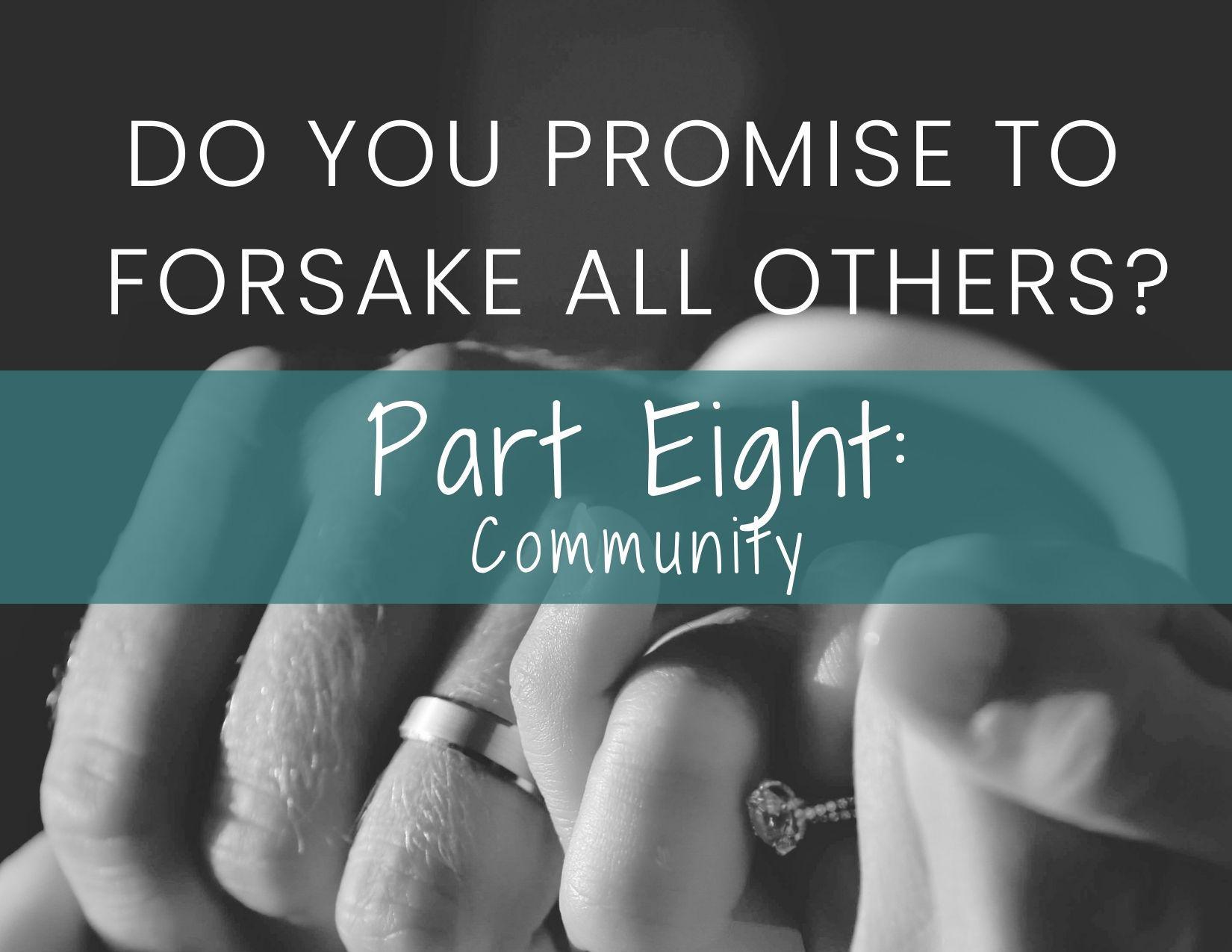 Community is also another group of people we need to evaluate. Examples of community are volunteering or just participating in community events. Again, in balance this is healthy and great for a couple to enjoy or contribute in events locally or even globally. You must evaluate your priorities in the area of volunteering and community and create a balance so you can keep your promise to forsake all others.
